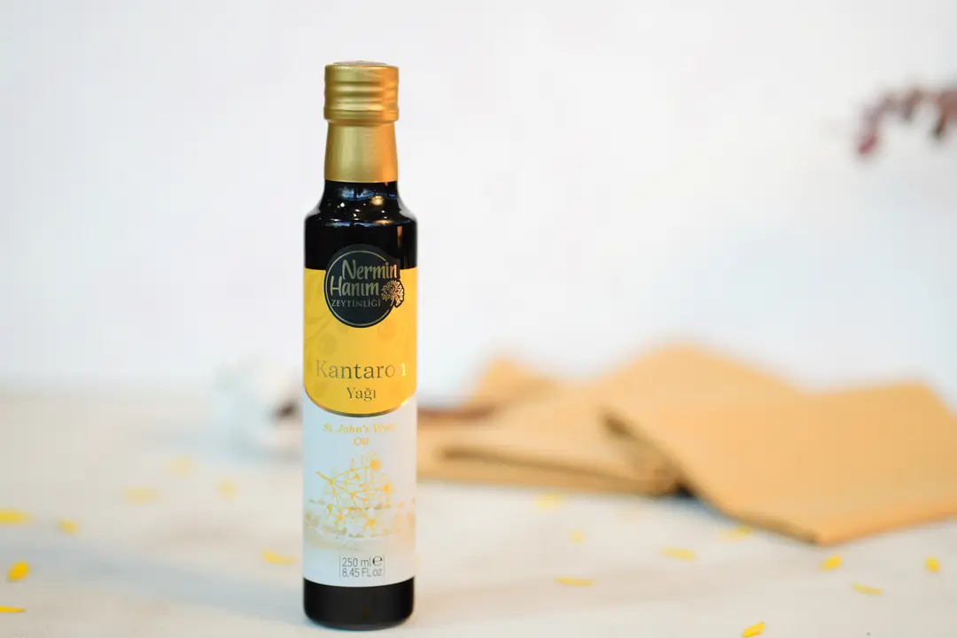 Nermin Hanım Zeytinliği’nde, kendi üretimimiz olan soğuk sıkım natürel zeytinyağları ile hazırlanan kantaron yağı hem geleneksel yöntemlere hem de modern hijyen standartlarına sadık kalınarak üretilir.